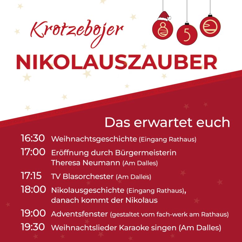 Der Krotzebojer Nikolauszauber ist eine gemeinsame Aktion der Gemeinde Großkrotzenburg, des fach-werks und örtlicher Gewerbetreibender.
